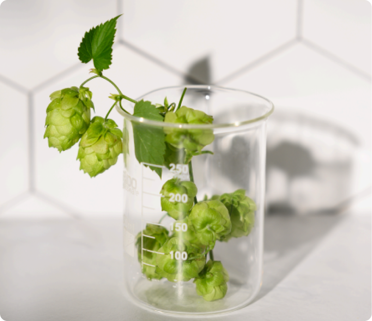Xanthohumol, an antioxidant from the hop flower has an unprecedented powerful effect. Studies show that Xanthohumol not only hydrates and fades wrinkles , but also reduces dark spots, redness and impurities . Thanks to its fourfold effect Every Xantho product falls under the heading of all-in-one.